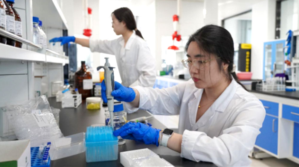 8月31日,檢驗員正在位于邯鄲經(jīng)濟技術開發(fā)區(qū)的晨光生物實驗室做產(chǎn)品農(nóng)藥殘留檢測試驗(晨光生物供圖)