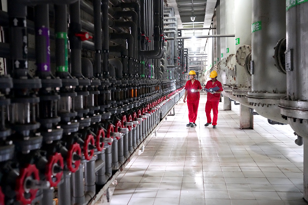 7月20日,精制車間員工正在巡檢生產(chǎn)情況(晨光生物供圖)