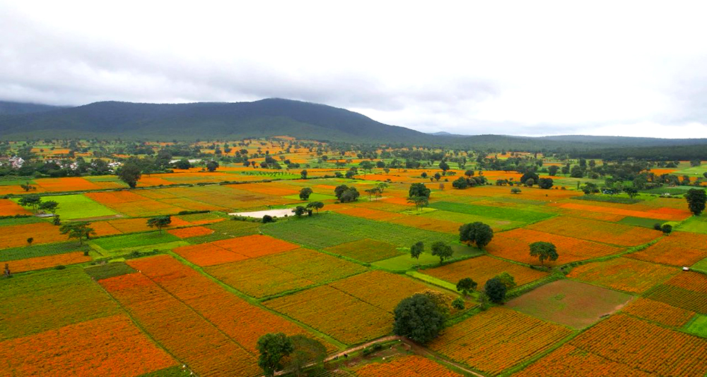 2016年,晨光生物在印度建起第二家工廠,圖為為工廠提供原料的卡納塔克邦萬壽菊種植基地(晨光生物供圖)